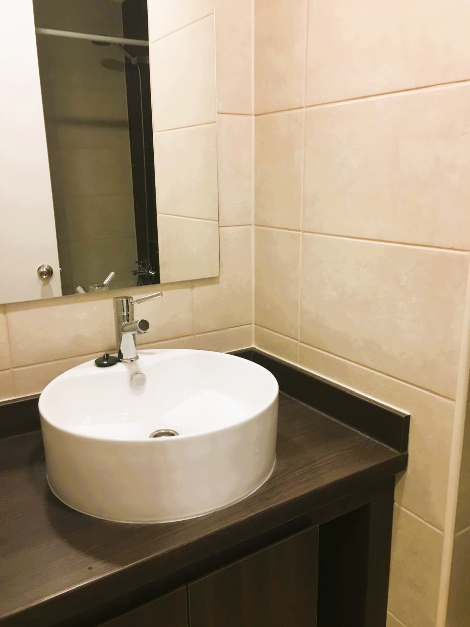 • Baños con vanitorio moderno y lavamanos sobrepuesto