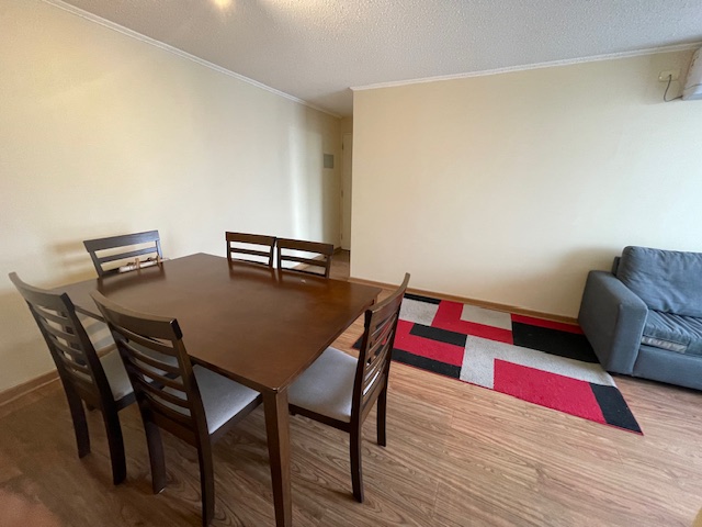 Departamento amoblado, ubicado en un tercer piso, consta de living comedor, comedor de diario, revestidos de piso vinílico, cocina completamente equipada, despensa, logia, tres habitaciones con closet y alfombrados, un baño, sistema de calefacción aire acondicionado.