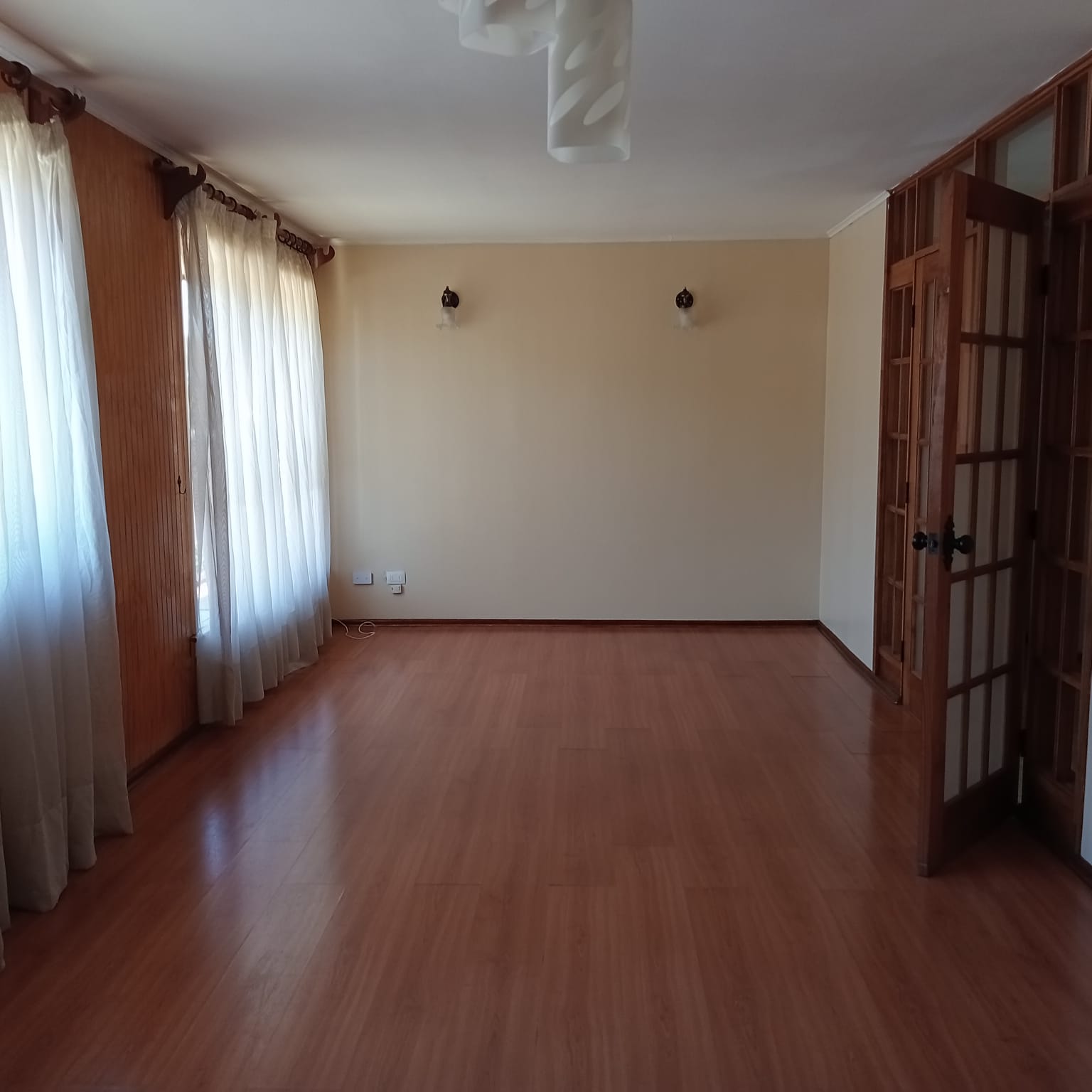 Consta de living comedor con piso flotante, combustión lenta, cocina amplia y equipada, tres habitaciones una en suite, un baño revestido en piso cerámico, pieza de servicio con baño.