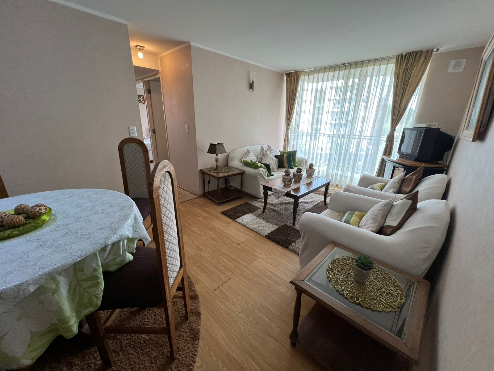 departamento completamente amoblado frente Universidad de Talca. Consta de 3 dormitorios todos con closet principal en suite, 2 baños con tina y espejos muro a muro, amplio living comedor y cocina, terraza, Loggia, estacionamiento y vigilancia las 24 horas