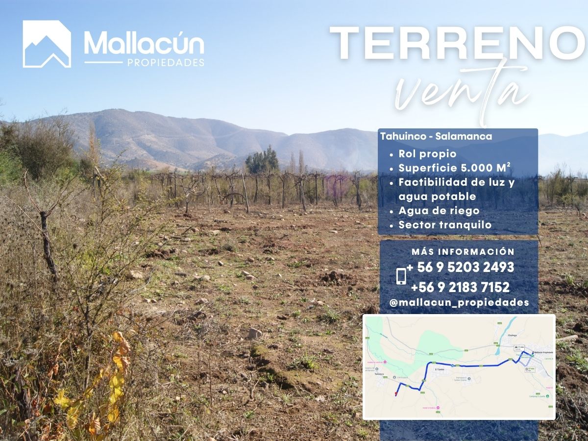 Mallacún Propiedades presenta exclusivas parcelas de agrado de 5.000 m² cada una, con ROL propio preasignado, listas para inscripción en el Conservador de Bienes Raíces. Ubicadas en Tahuinco, un sector privilegiado del Valle del Choapa, a solo 10 km del centro de Salamanca, Región de Coquimbo.