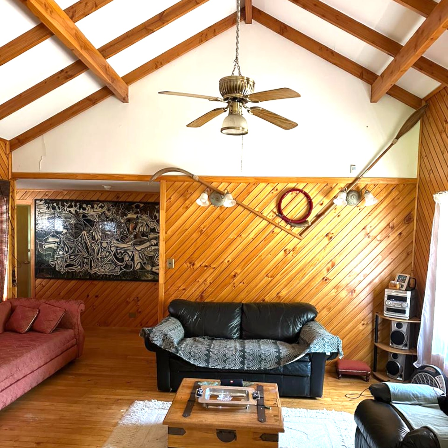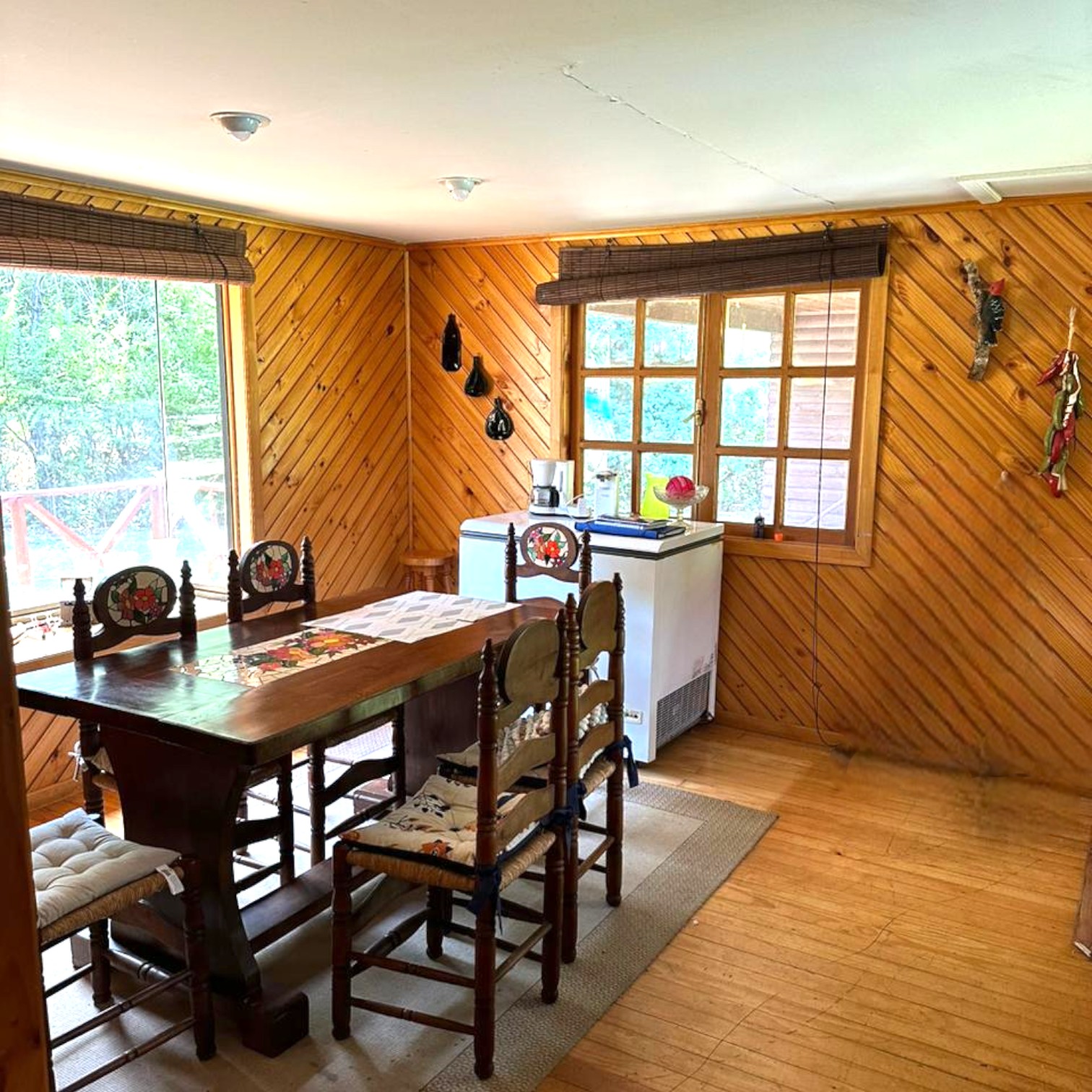 El amplio living comedor cuenta con una acogedora estufa a leña para los días más fríos.