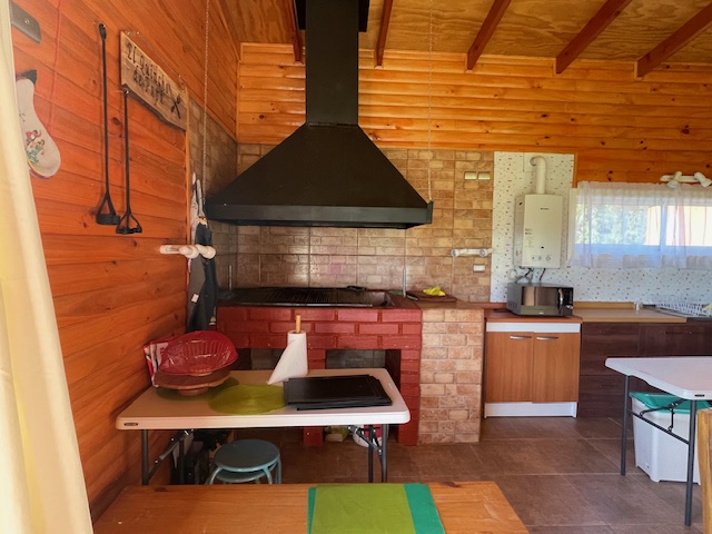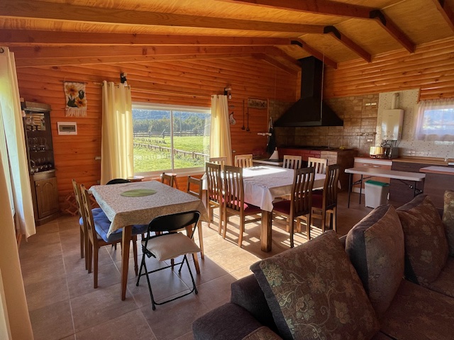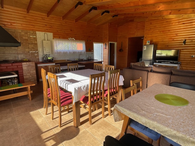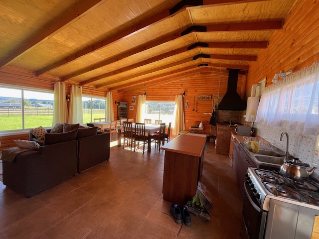 Propiedad construida en su interior con madera nativa, consta de living comedor y cocina americana con piso cerámico; dos habitaciones, uno en suite; un baño; sistema de calefacción con combustión lenta.