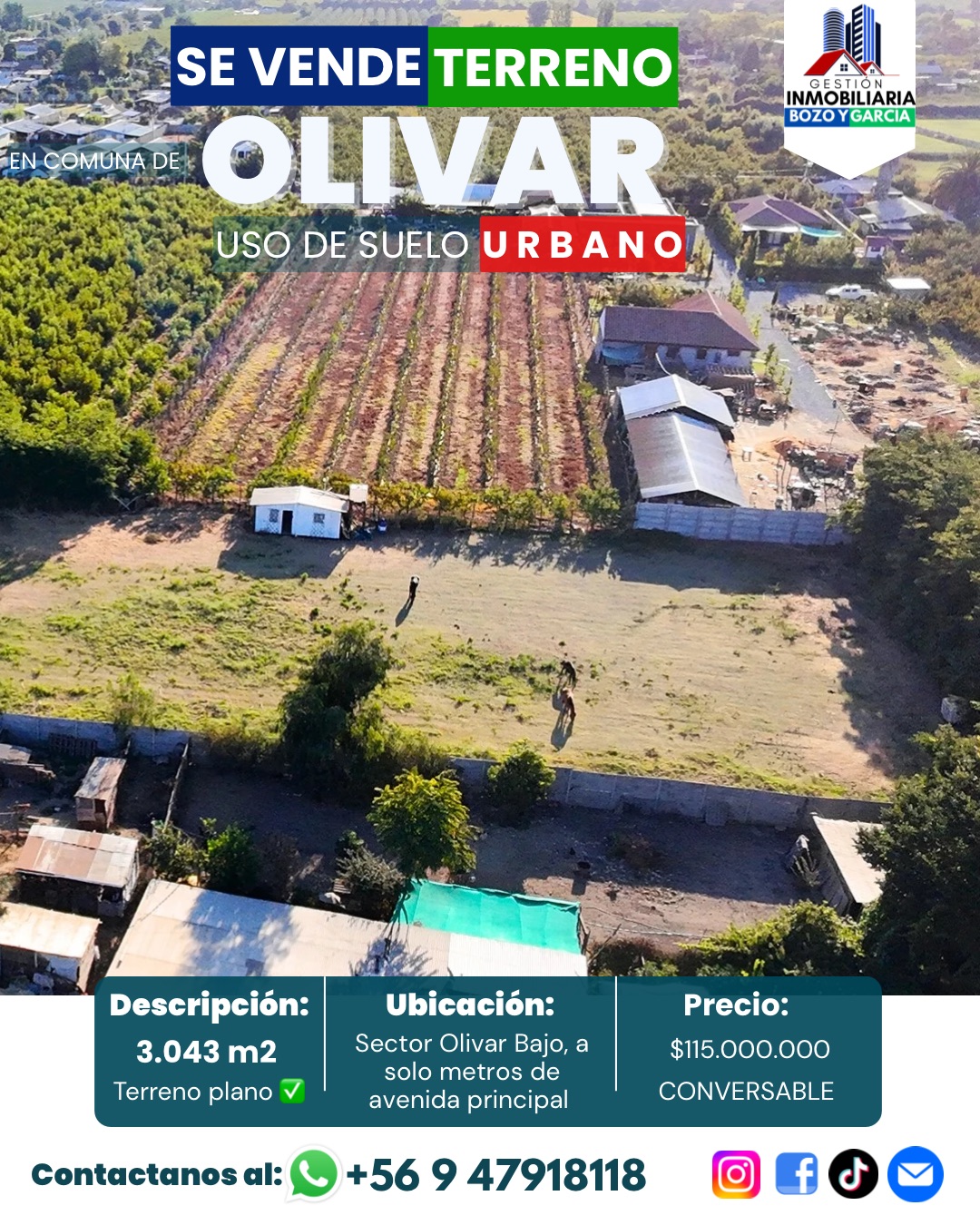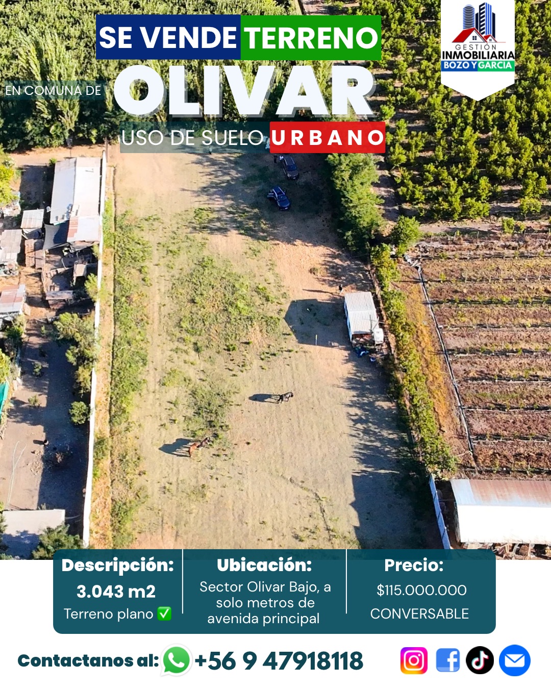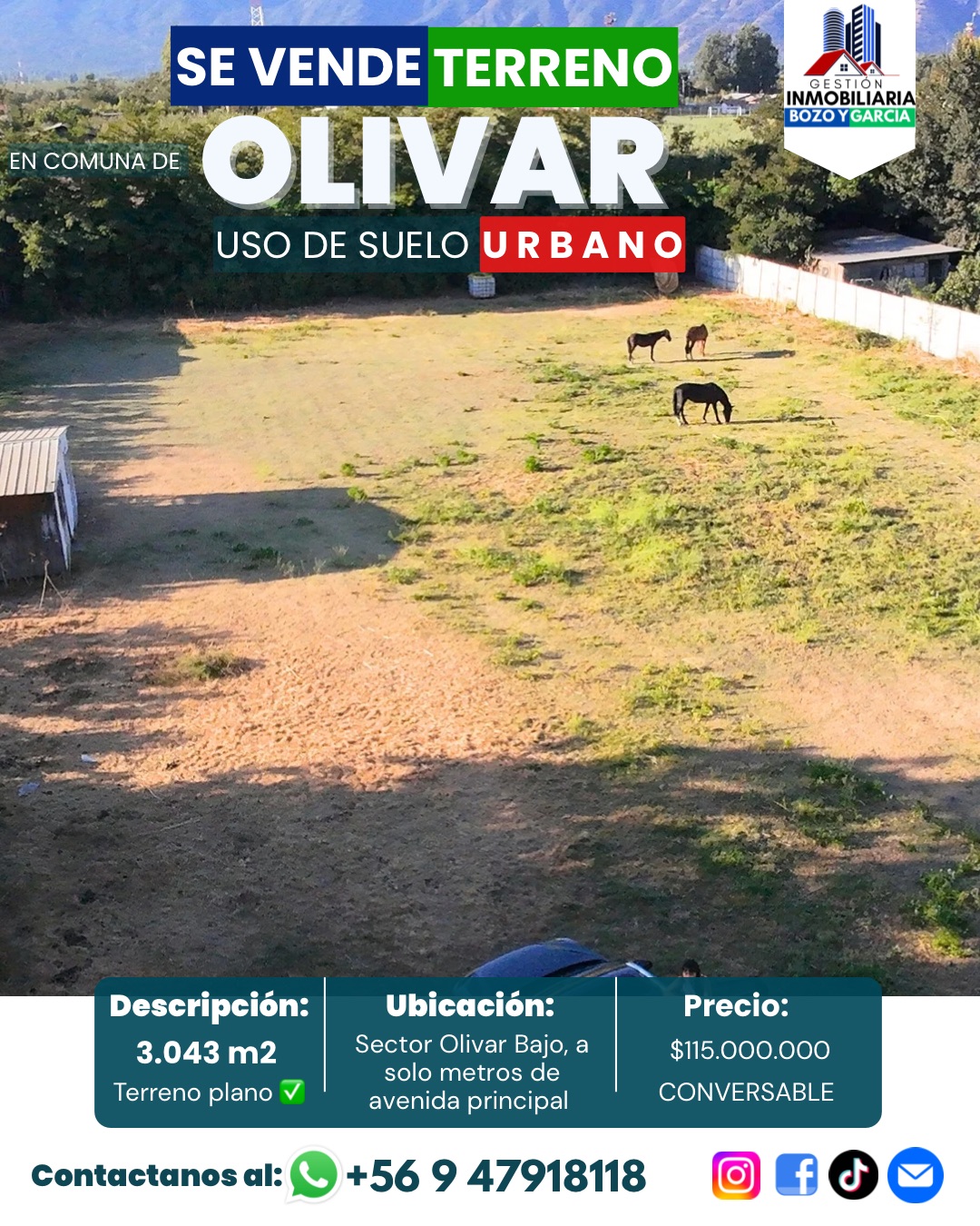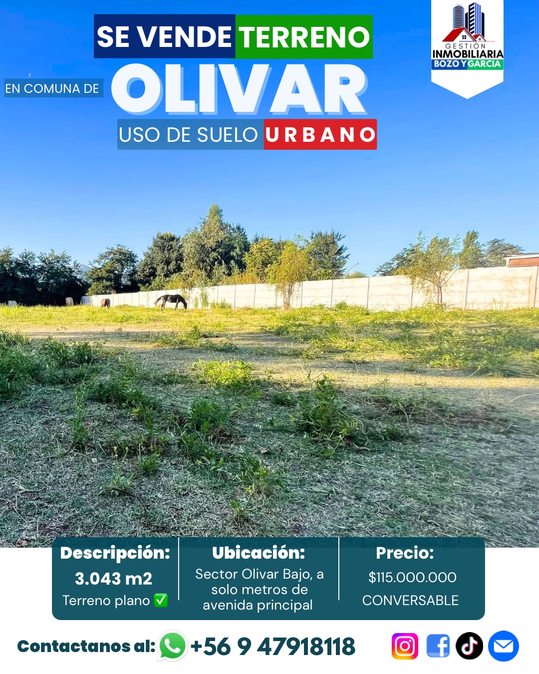 | VENDPO ESPECTACULAR TERRENO URBANO EN COMUNA DE OLIVAR | TERRENO O SITIO URBANO | $115.000.000 | 3 | 01 MARZO DE 2026 |