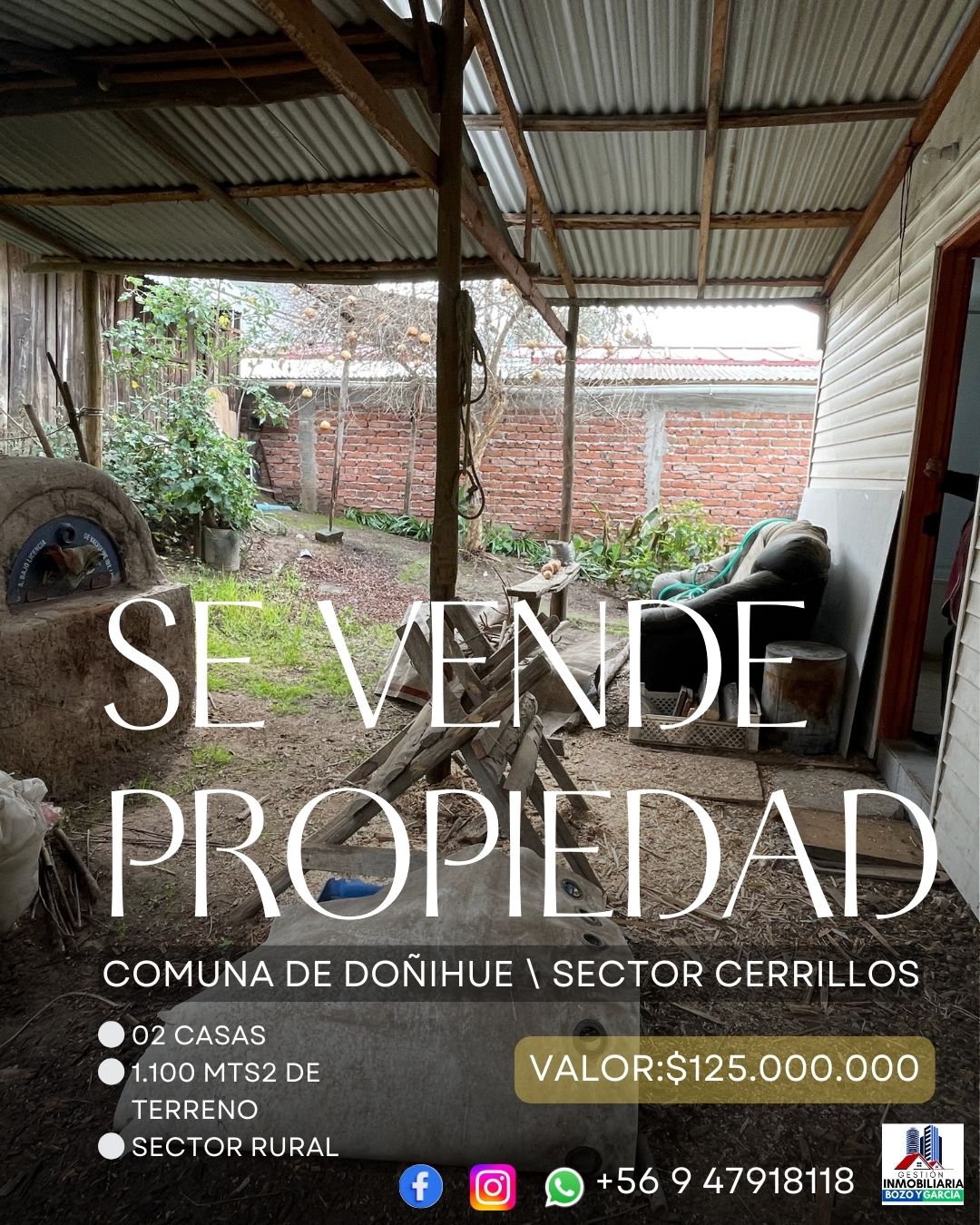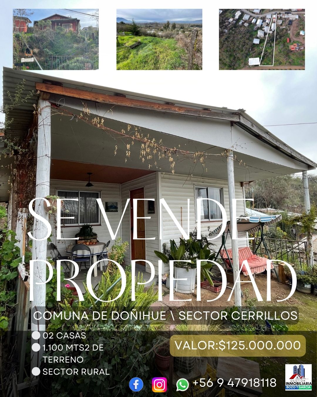 VENDO PROPIEDAD DE 1,100 Mts.2 UBICADA EN LA COMUNA DE DOÑIHUE, EN EL SECTOR DE CERRILLOS.