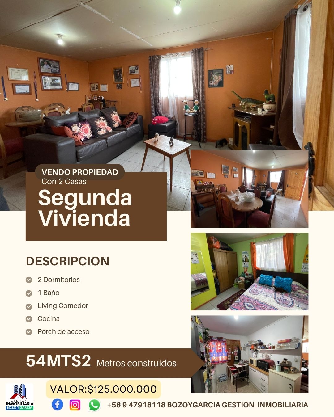 Esta propiedad cuenta con un terreno de 1.100 metros cuadrados, dos viviendas de madera; la primera de material ligero, dos habitaciones, living comedor, cocina y baño.