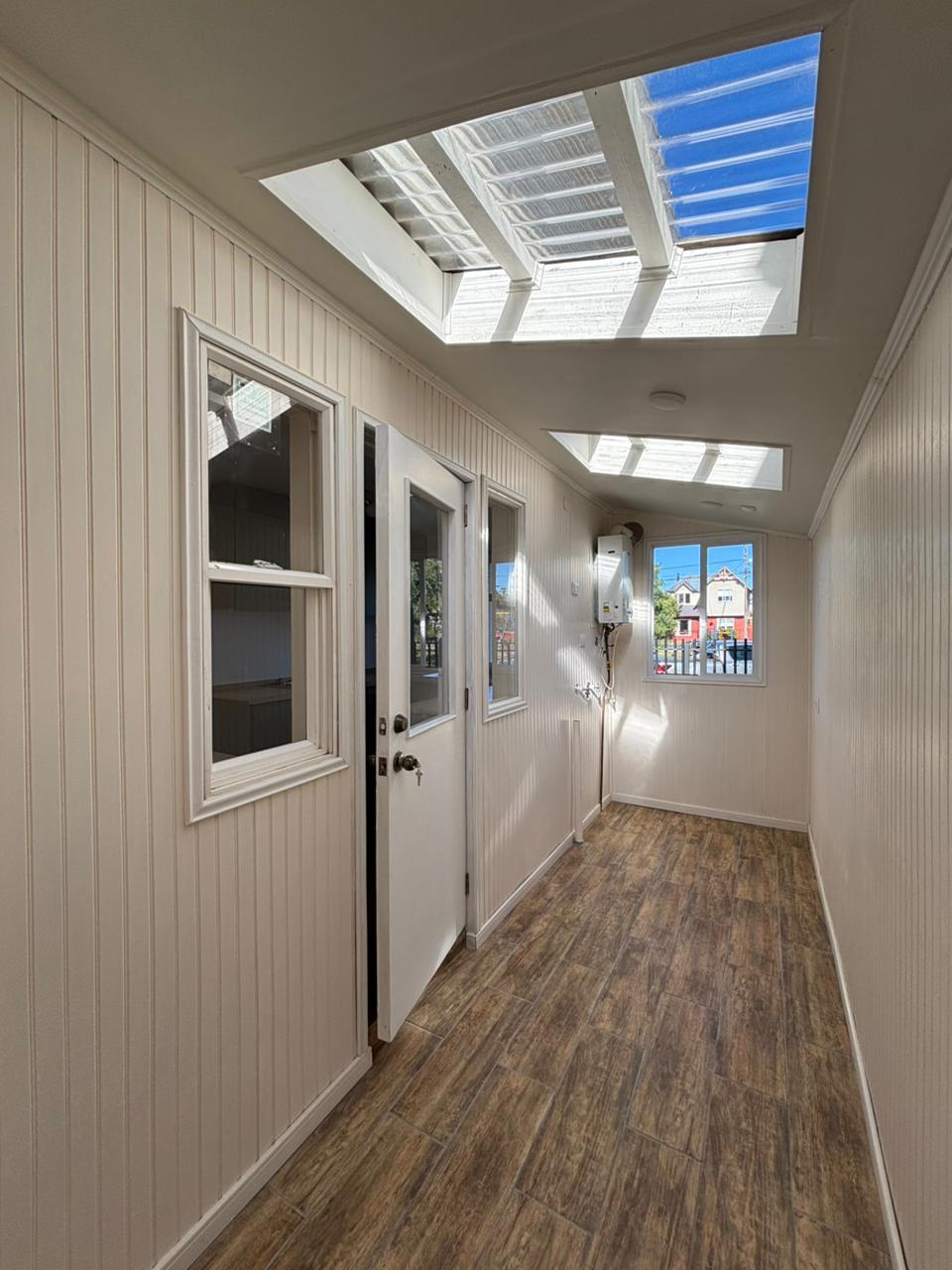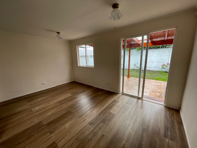 Primer piso: Living comedor revestido en piso flotante con salida a patio semi techado, cocina americana completamente equipada, espaciosa logia, un baño visita.